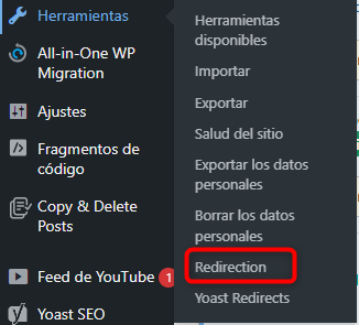 Una vez lo tienes, te buscas en el menú el Herramientas y de ahí te vas a Redirections.